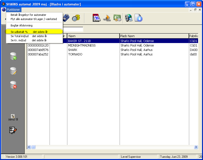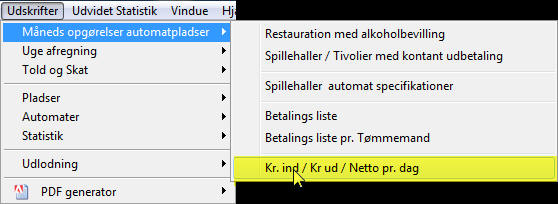 - NY funktion, Udbetaling procenter, Kr. ind og Kr. ud samt total ind og total ud. kan ses pr. automat et år tilbage i tiden. funktion finder under automat oversigten.