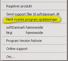 Fra den, 15 november kan alle som abonnere på support og opdatering gratis hente en program opdatering på internettet. Under Hjælp i SHARKS programmet finder du menu punktet ”Hent nyeste program opdateringer”